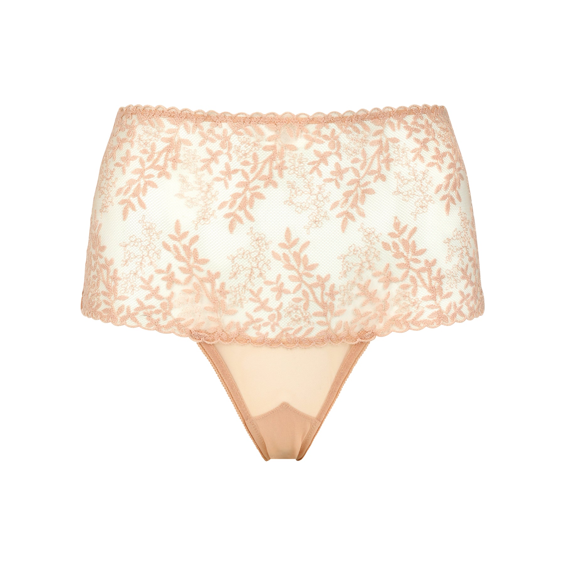 Découvrez la culotte taille haute Désir en coloris Blush, une nouvelle teinte douce et lumineuse qui enrichit notre collection signature en dentelle.